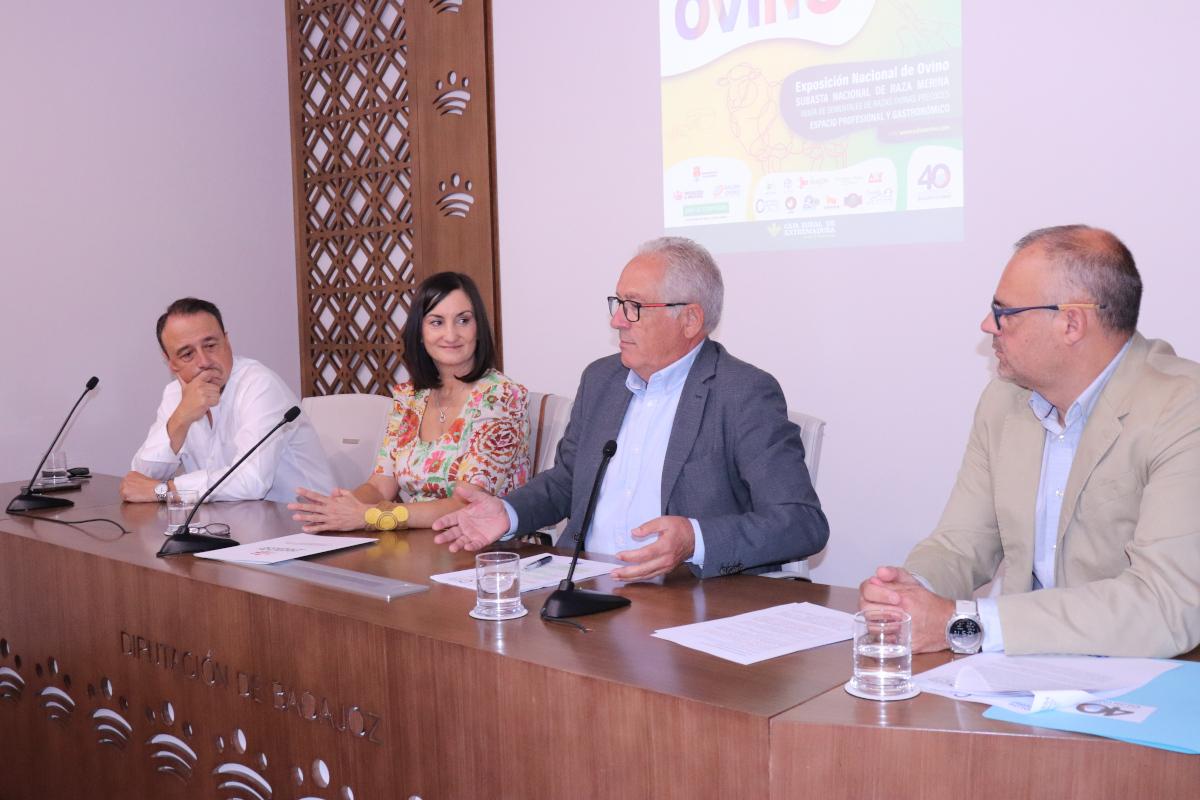 El municipio de Castuera celebrará la 40º edición general del Salón Ovino del 6 al 8 de septiembre. Así lo han presentado esta mañana en rueda de prensa la diputada delegada del Área de Desarrollo Rural, Reto Demográfico y Turismo de la Diputación Provincial de Badajoz, Ana Belén Valls, acompañada del alcalde de Castuera y presidente de la Institución Ferial Salón Ovino, Francisco Martos, y por el presidente de la Organización Interprofesional agroalimentaria del ovino y el caprino, Interovic, Raúl Muñiz, además del director técnico del Salón, Luis Fernández.
