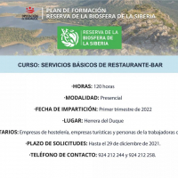 Abierto plazo de solicitudes para el curso de ''Servicios básicos de Restaurante-Bar'' en Herrera del Duque