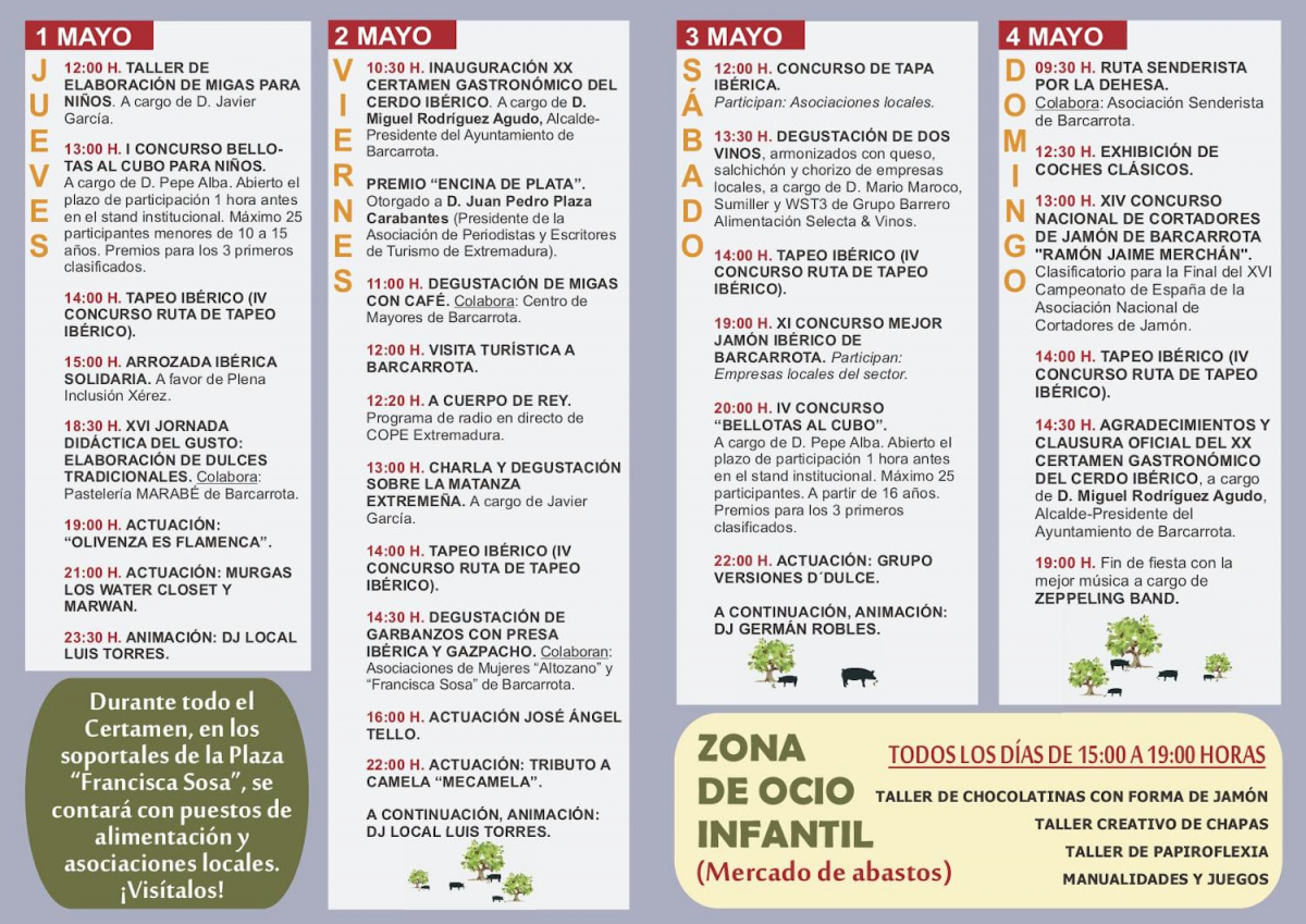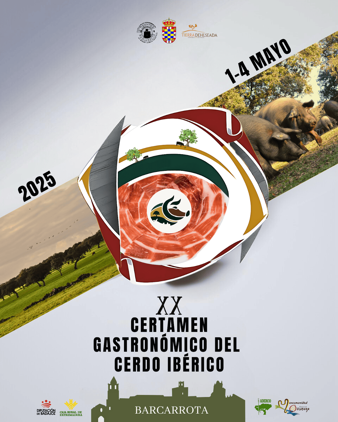 Del 1 al 4 de mayo tendrá lugar la XX edición del Certamen Gastronómico del Cerdo Ibérico, organizado por el Ayuntamiento de Barcarrota y patrocinado por la Diputación de Badajoz.