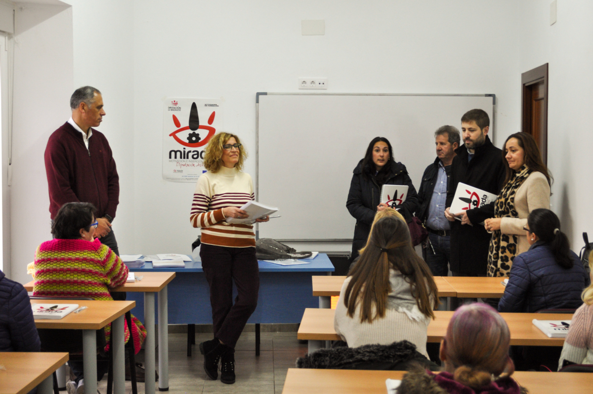 Esta mañana ha tenido lugar en el Centro Cívico de Salvatierra de los Barros, la inauguración del curso de formación de “Atención Sociosanitaria a Personas Dependientes en Instituciones Sociales” desarrollado desde el Proyecto Motivación e Inserción Laboral Diputación Activa (MIRADA), impulsado por el Área de Desarrollo Rural, Reto Demográfico y Turismo y la Oficina de Proyectos Europeos de la Diputación de Badajoz, en la que han estado presentes la Vicepresidenta Segunda y Diputada Delegada del Área de Recursos Humanos y Régimen Interior de la Diputación de Badajoz, Virginia Borrallo, el alcalde de Salvatierra de los Barros, Francisco José Saavedra, y el Coordinador del Proyecto Mirada, Juan Antonio Luego.