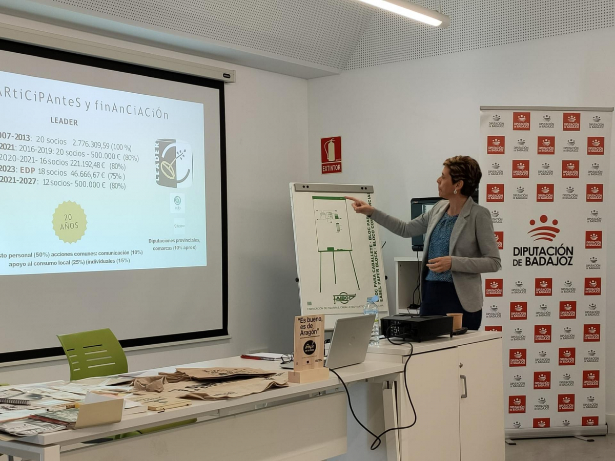 La jornada de trabajo ha comenzado a las nueve y media de la mañana y en ella ha intervenido, Manuel Mejías, Director del Área, David Galán, Jefe de Servicio de Desarrollo Rural, Agricultura y Ganadería, representantes de los 11 Grupos de Acción Local, técnicos y técnicas de la Diputación de Badajoz y como ponente invitada Rosa Rived, Técnica de Cooperación y Coordinadora del proyecto “Pon Aragón en tu mesa”.