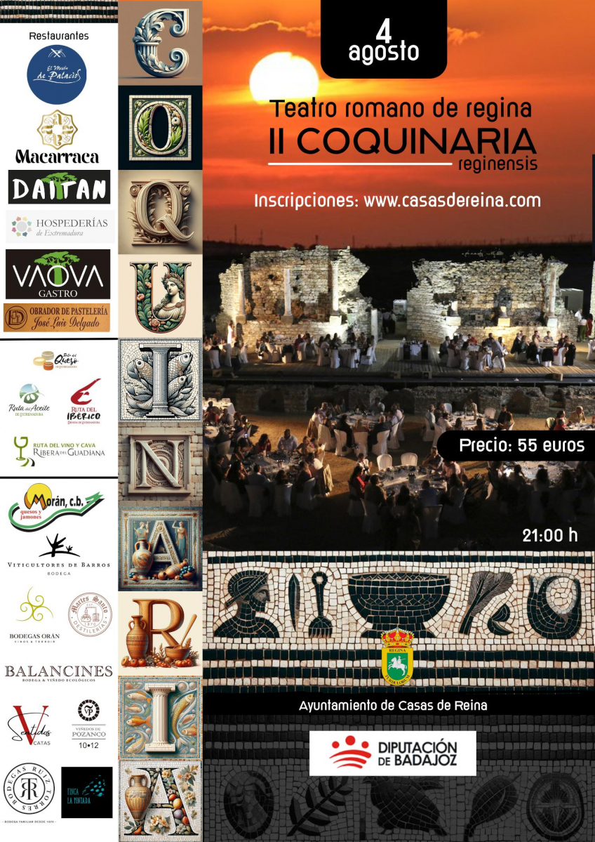El impresionante patrimonio monumental del Teatro Romano de Regina y la mejor gastronomía extremeña vuelven a fundirse el próximo lunes 4 de agosto gracias a Coquinaria Reginense, el evento gastronómico gourmet en el que se darán cita distintos chefs y sumillers junto con los mejores productos de nuestra tierra: