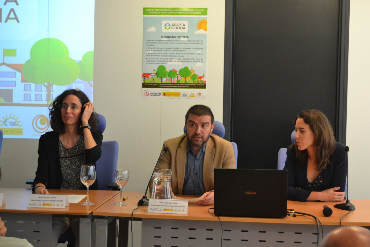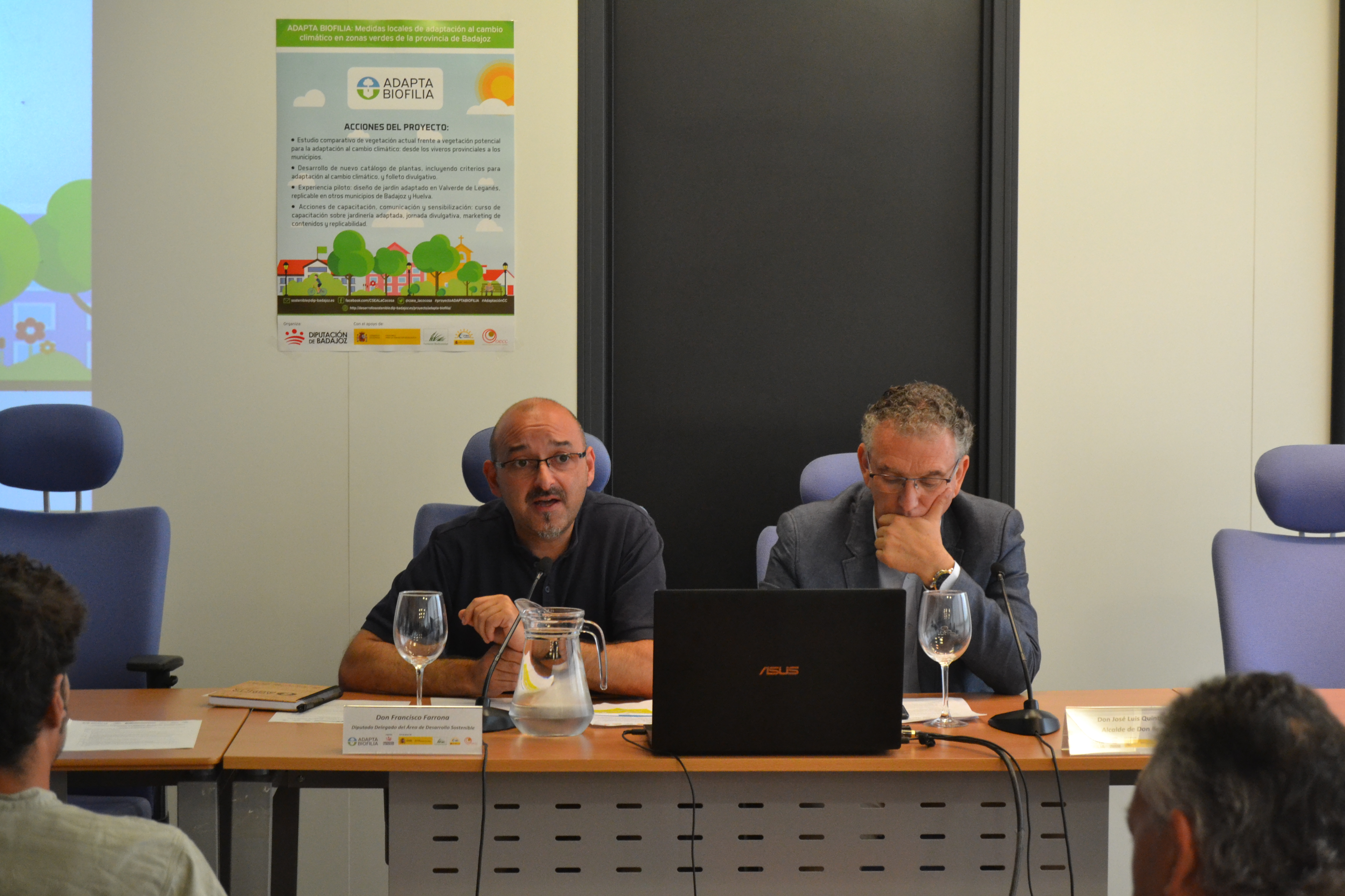 En la jornada, han participado también las técnicas Dña. Seila López, ambientóloga y Dña. Andrea García, ingeniera de montes, que han estado desarrollando el proyecto ADAPTA BIOFILIA. Han presentado las acciones que contempla el proyecto y entre ellas, la elaboración de un Catálogo de Especies del Vivero de Diputación de Badajoz que contiene iconografía sobre adaptación al cambio climático que ya está listo para su descarga y consulta. D. Rafael Fernández, técnico de los Viveros Provinciales de Diputación de Badajoz y D. Gerardo Acevedo, Jefe de Sección de Viveros Provinciales de Diputación de Huelva.