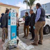 El objeto principal de la visita, era conocer la red de puntos de recarga de vehículos eléctricos que está ejecutando el CIEGC, cuyos detalles se pudieron contrastar de primera mano, al estar presente en la reunión el ingeniero responsable del proyecto, César Rodríguez. Tras la reunión, los técnicos del CIEGC acompañaron a la delegación de Diputación de Badajoz, en la visita de dos de los 17 puntos de la red de recarga insular, ubicados en las localidades de Guía (22 kW) y Agaete (50 kW), de las mismas características que los proyectados para la red de puntos de recarga de vehículos eléctricos de la provincia pacense.