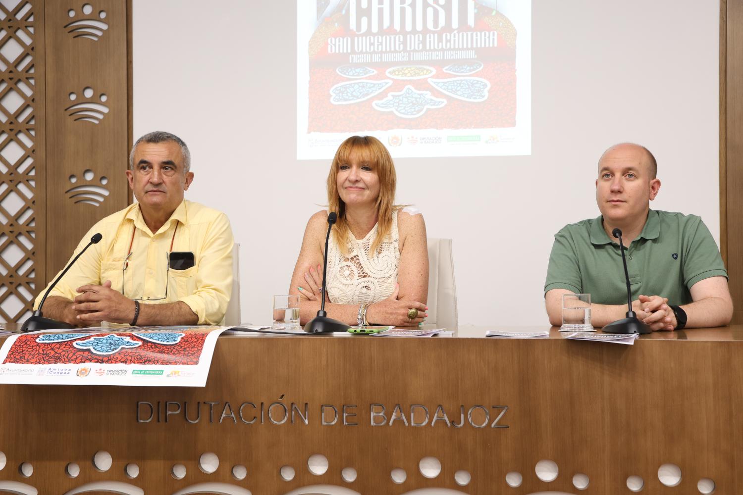 Durante la presentación, la diputada del Área de Igualdad, Lourdes Linares, ha manifestado que la Diputación, a través del Área de Desarrollo Rural, Reto Demográfico y Turismo, cuenta con un programa de subvenciones nominativas destinado a las 35 Fiestas de Interés Turístico Regional de la provincia de Badajoz que asciende a 310.000 euros. De ellos, el Corpus Christi de San Vicente de Alcántara recibe 10.000 euros. También ha explicado que el municipio promociona esta fiesta a través de su campaña “San Vicente de Alcántara, con los 5 sentidos”, una iniciativa presentada a la Convocatoria de Ayudas de la Diputación para la Reactivación de la Economía local.