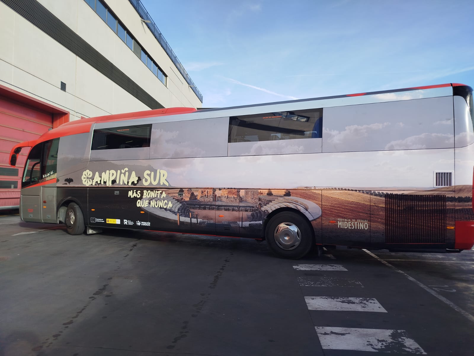 Por último, la comarca de Campiña Sur se va a realizar durante 6 semanas, comenzando la primera semana de diciembre, en 10 autobuses de las empresas Avanzabus, ALSA y Autocares San Sebastián, que cubren las líneas Mérida-Madrid, Gijón Sevilla, Salamanca –Sevilla, Plasencia-Sevilla, A Coruña-Algeciras y Zafra-Córdoba. En los laterales y la parte trasera, se han rotulado fotografías de la comarca con la leyenda “Más bonita que Nunca” y con el claim “Provincia de Badajoz. Mi Destino”.