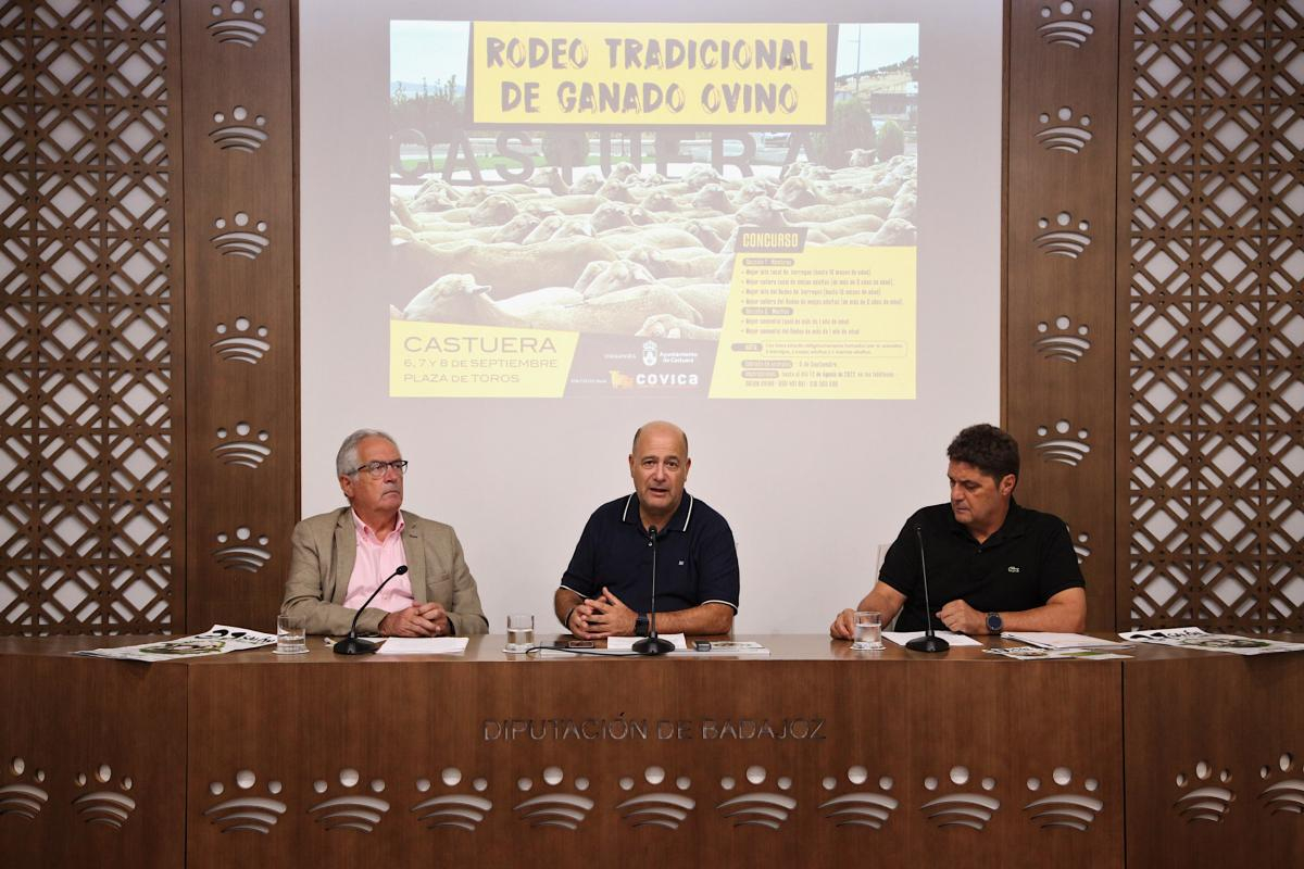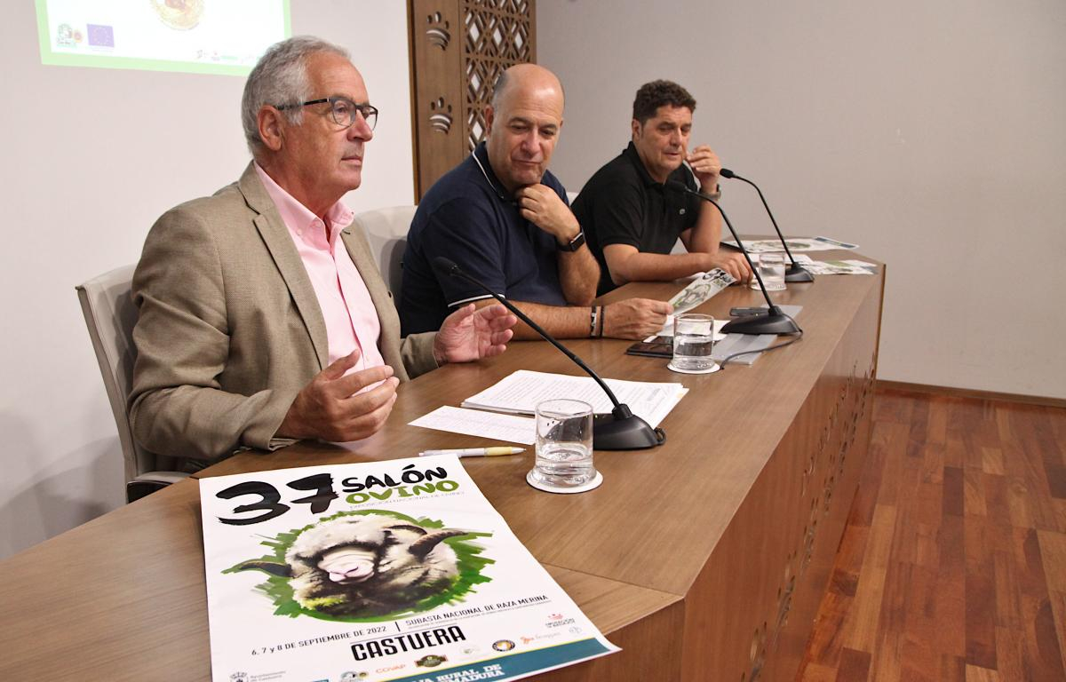 La próxima semana, del 6 al 8 de septiembre, se celebrará la 37ª Edición del Salón de Ovino de Castuera, retomando la normalidad sin restricciones ni limite de aforo. Así lo han presentado esta mañana en rueda de prensa el diputado delegado del Área de Desarrollo Rural, Reto Demográfico y Turismo de la Diputación Provincial de Badajoz, Lorenzo Molina, acompañado del diputado provincial del Área de Cultura y Deportes, alcalde de Castuera y presidente del Salón Ovino, Francisco Martos, y por César Cabanillas, director técnico del Salón Ovino.