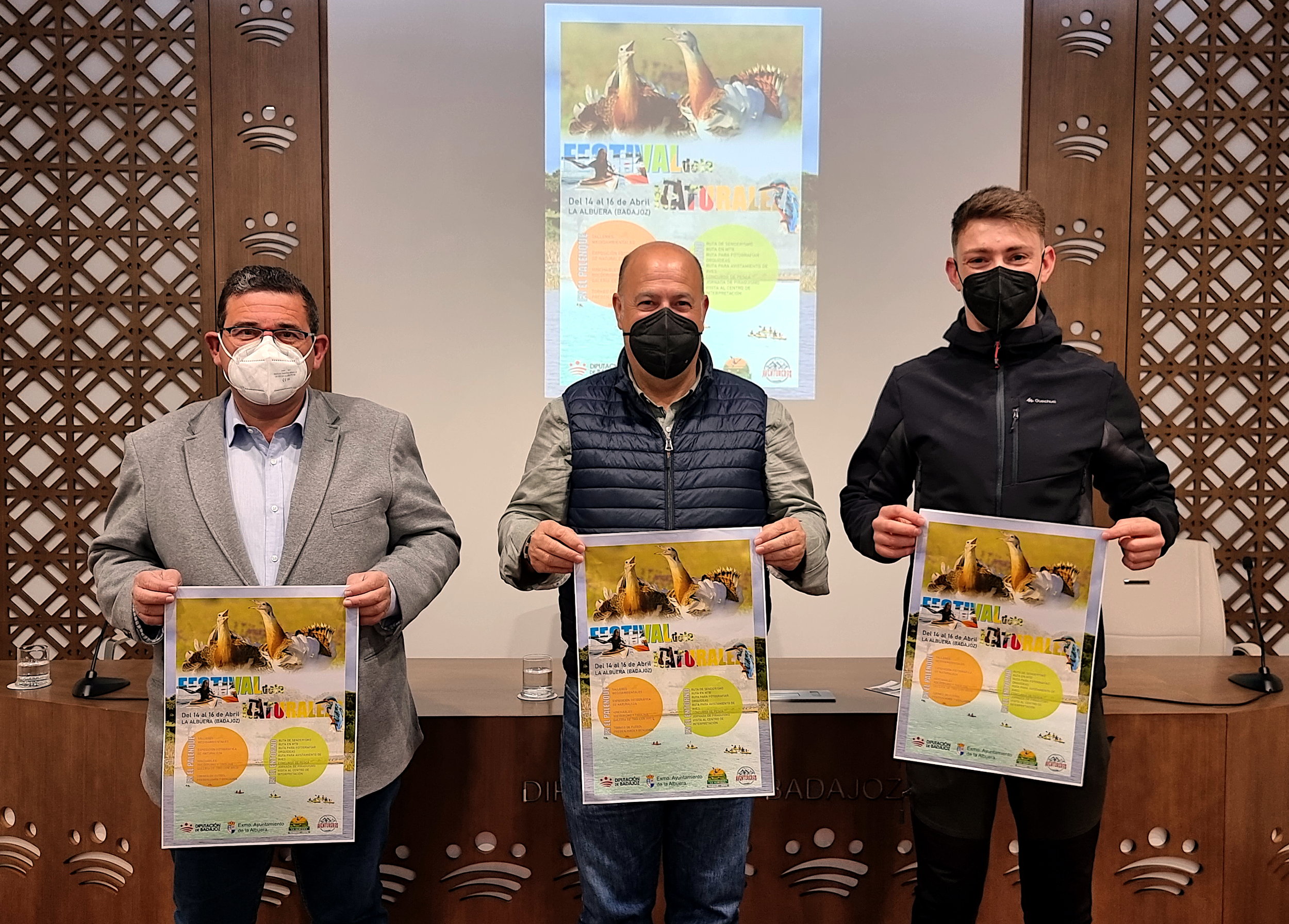 Esta mañana se ha presentado en rueda de prensa de Diputación de Badajoz, la VII edición del Festival de la Naturaleza de La Albuera que tendrá lugar del 14 al 16 de abril, y que está organizado por el Ayuntamiento de La Albuera en colaboración con la Diputación de Badajoz. En la presentación han estado presentes Lorenzo Molina, diputado delegado del Área de Desarrollo Rural, Reto Demográfico y Turismo, y Manuel Antonio Díaz, alcalde de La Albuera.