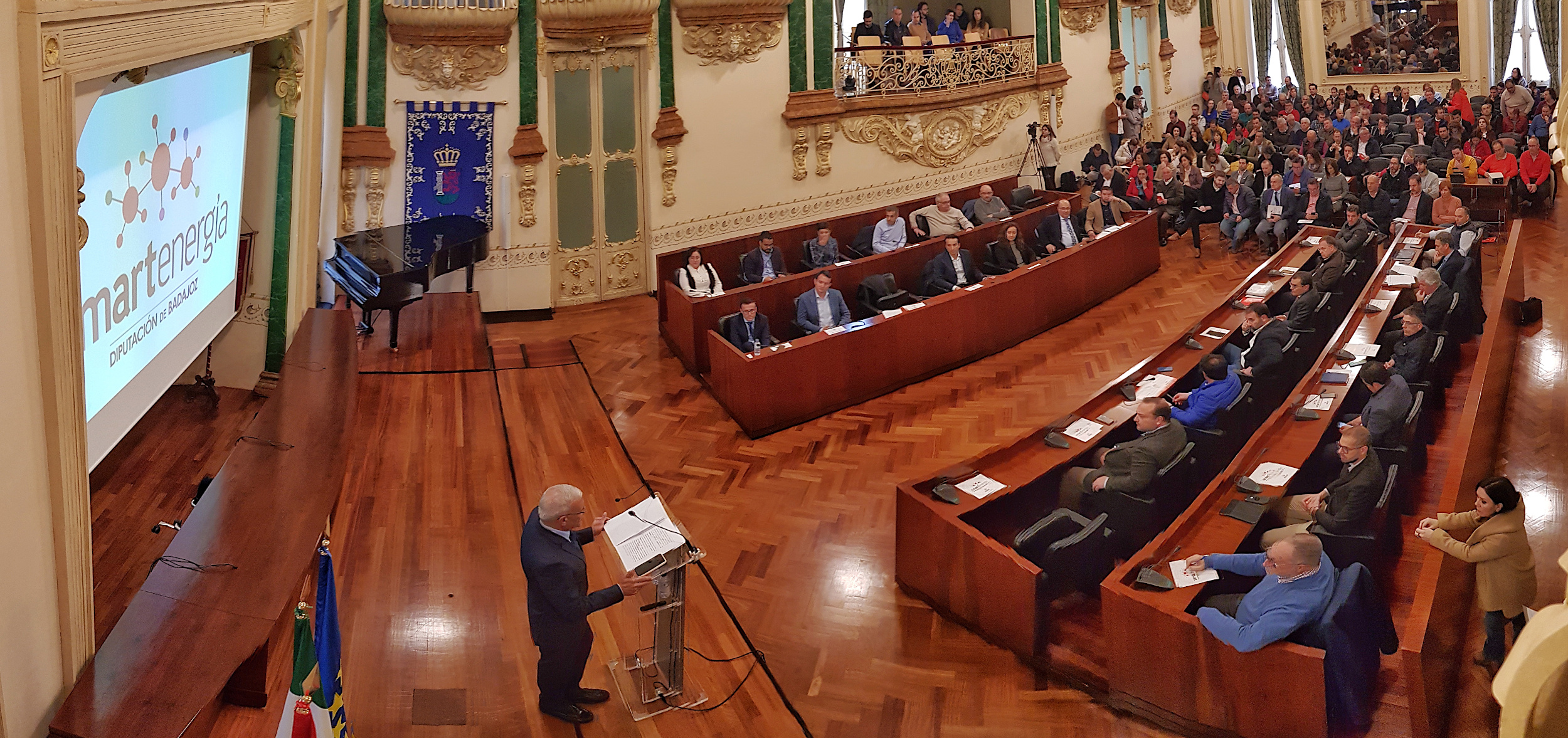 En el acto de presentación del Plan SmartEnergía, que ha tenido lugar esta mañana en el salón de plenos de la Institución con la asistencia de diputados provinciales y alcaldes, también se ha contado con la presencia del subdelegado del Gobierno en Extremadura, Francisco Alejandro Mendoza, que ha señalado que proyectos como éste son “necesarios” para la mejora de los servicios públicos y certifican “el compromiso de la Diputación con sus vecinos”. También ha intervenido el presidente de la Fempex, Francisco Buenavista, que ha asegurado que con este plan “la Diputación de Badajoz se coloca a la vanguardia de las Diputaciones de toda España, al modernizar uno de los servicios esenciales de los municipios, como es el alumbrado público”.