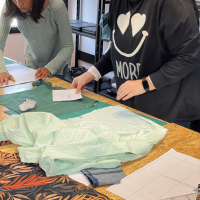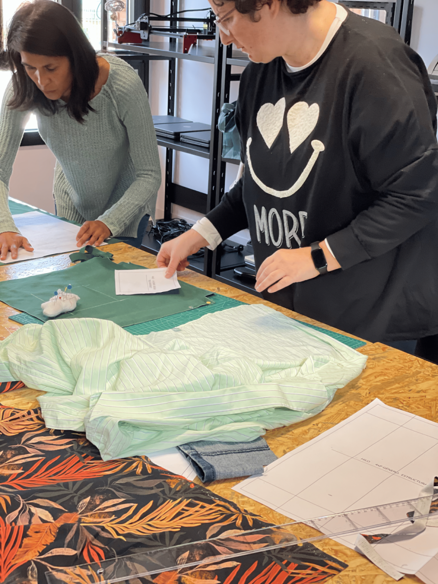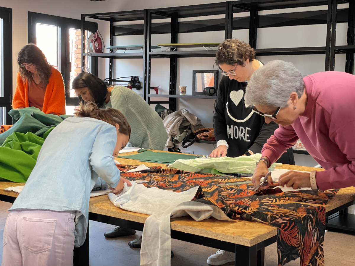 Una vez conocieron los aspectos y objetivos generales del proyecto, los asistentes al evento disfrutaron en el espacio Re-Inventa y Re-Para. Una actividad centrada en el corte y confección, que vino de la mano de las diseñadoras extremeñas Marta Gómez e Itsaso del Rey. Ellas fueron las encargadas de enseñar a cortar con patrones, coser a mano y a máquina y utilizar técnicas novedosas como upcycling (proceso mediante el cual los desechos son transformados en productos de mayor calidad y valor ecológico).