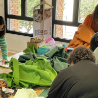 La actividad arrancó con el espacio Re-Conoce, dónde se presentó el proyecto RESOTEX, una apertura que sirvió para contextualizar los talleres, la industria textil a nivel global y la repercusión que tiene para el Medio Ambiente la cantidad de ropa que producimos, así como, la contaminación que supone para el planeta. Sin olvidar, la gestión de residuos, o la poca transparencia de las marcas a la hora de hablar de sostenibilidad o la regeneración de prendas.