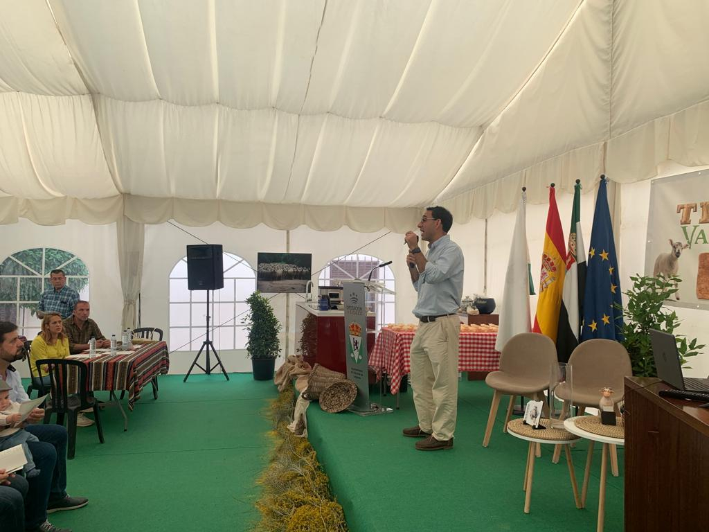 La Diputación de Badajoz, a través del Área de Desarrollo Rural, Reto Demográfico y Turismo, ha participado en la subasta de raza merina en la XII edición de ‘’Vive la Trashumancia'' y la IV ''Feria del Queso Artesano’’ de Valverde de Leganés, que tuvo lugar en la carpa institucional del municipio el 21 de mayo.