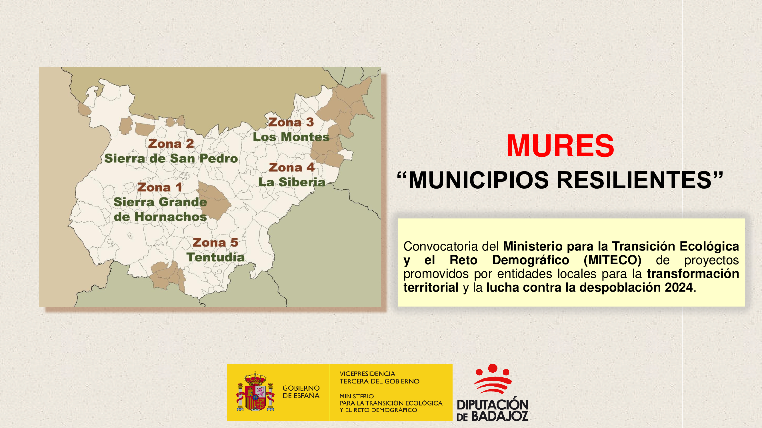 El Área ha resultado beneficiaria de esta actuación en la convocatoria 2024 de ayudas a proyectos promovidos por entidades locales para la transformación territorial y la lucha contra la despoblación, impulsada por el Ministerio para la Transición Ecológica y el Reto Demográfico (MITECO) en la línea de subvenciones para proyectos innovadores de transformación territorial y lucha contra la despoblación. Gracias a este respaldo, MURES pondrá en marcha un conjunto de acciones orientadas a dinamizar el medio rural, reforzar el tejido socioeconómico y mejorar la capacidad de adaptación de los municipios participantes ante los retos demográficos y climáticos.