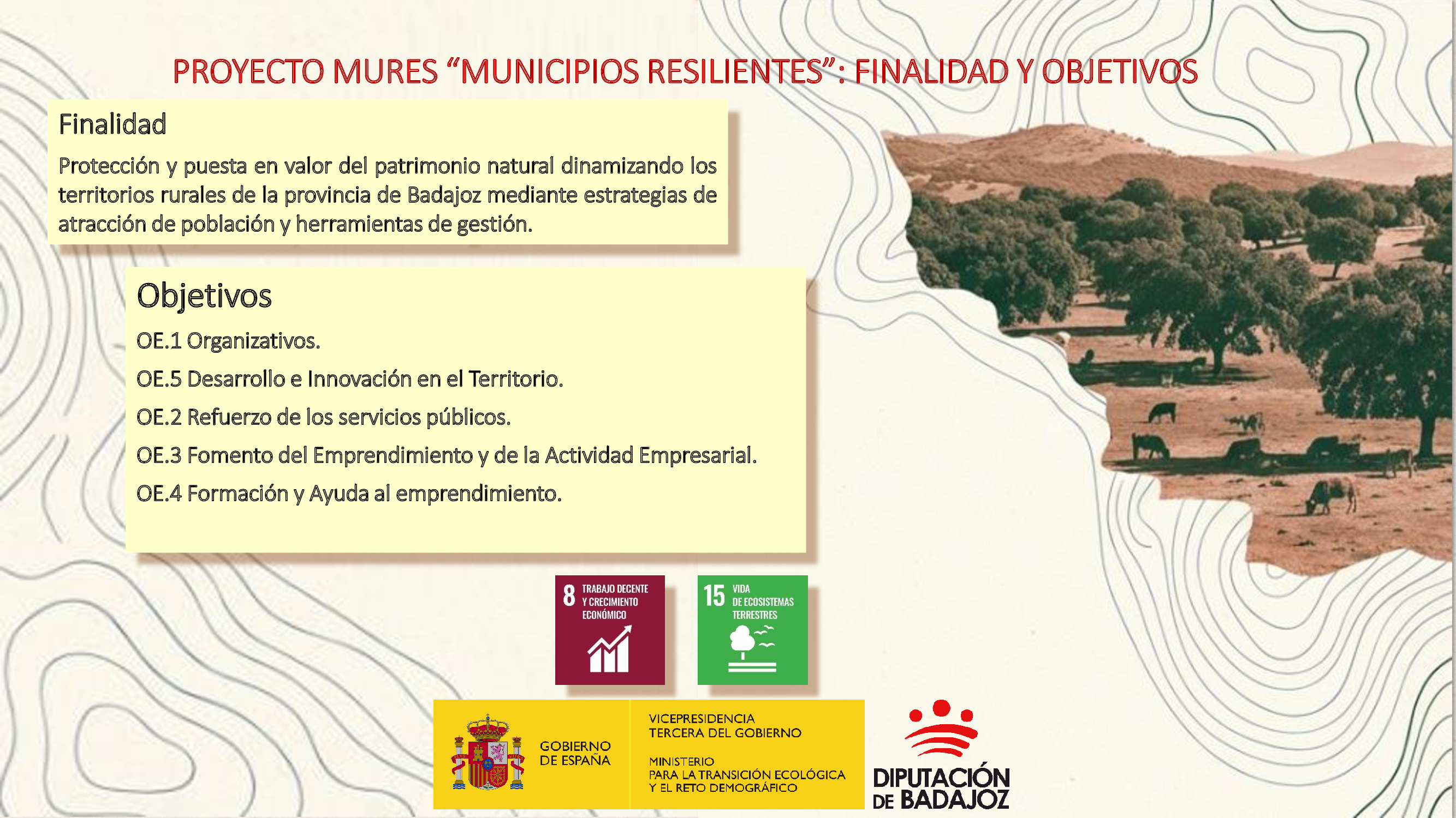 La Diputación de Badajoz desarrollará el proyecto en colaboración con ayuntamientos, grupos de acción local, entidades sociales, centros de investigación y agentes del territorio, con el objetivo de consolidar una red de resiliencia territorial que permita transferir la metodología a otras zonas rurales.