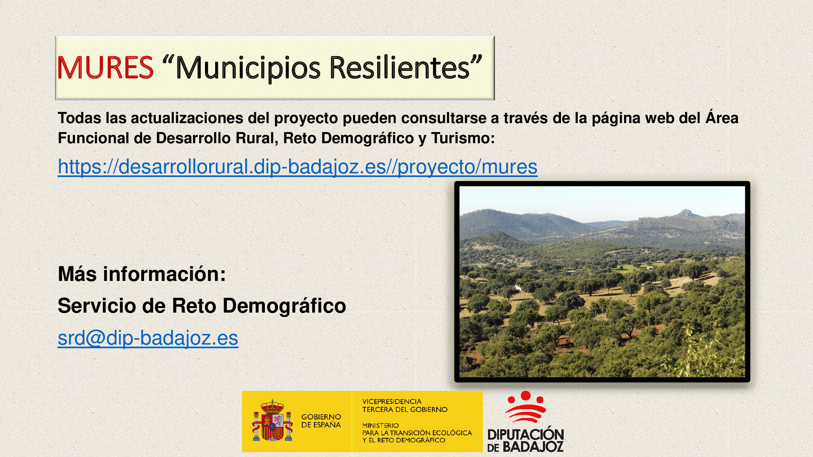 Para más información, pueden ponerse en contacto con el Servicio de Reto Demográfico (srd@dip-badajoz.es).