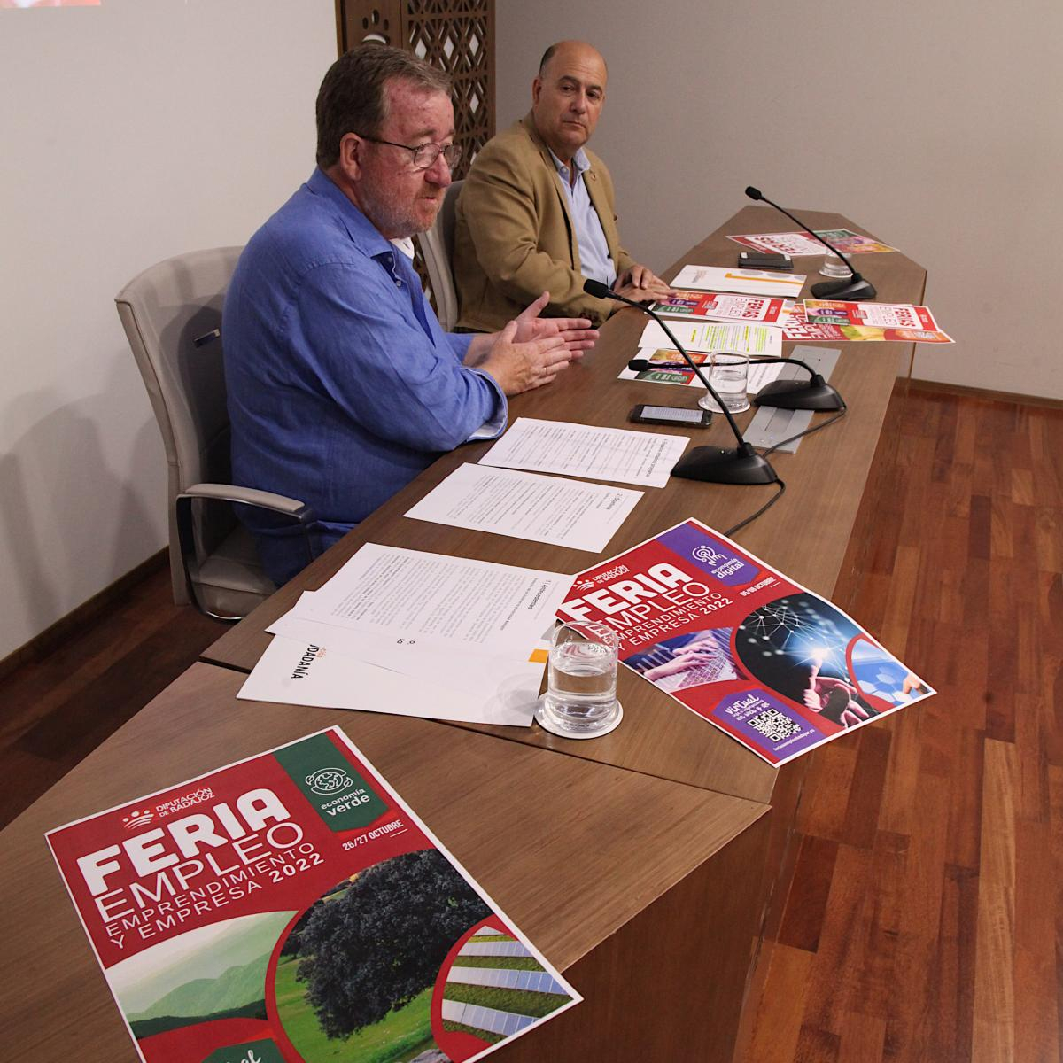 El diputado delegado del Área de Desarrollo Rural, Reto Demográfico y Turismo de la Diputación, Lorenzo Molina, junto al director de Fundación Ciudadanía, J. José Salado, han presentado esta mañana en rueda de prensa la nueva edición de la Feria de Empleo, Emprendimiento y Empresa, regresando en formato online tras su última celebración en 2019.
