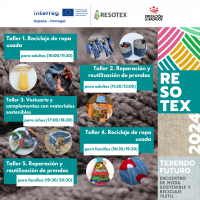 Además, el público en general podrá participar en cinco talleres dedicados a reciclar, reutilizar y elaborar prendas propias, dos para adultos, uno para público infantil y dos para familias. Inscripciones aquí: PINCHA PARA INSCRIBIRTE