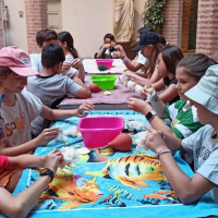 Posteriormente, la siguiente actividad organizada para los estudiantes, tuvo lugar en el interior del museo, donde recibieron una breve introducción de la importancia de la raza merina en la historia de la región y en el presente de manera amena y dinámica a través de un taller de proceso de hilado de la lana, para después, crear sus propios complementos de lana mediante la técnica del fieltro húmedo.