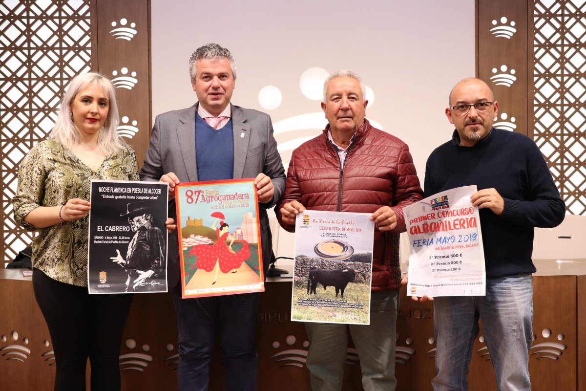 Esta mañana se ha presentado en rueda de prensa la 87 edición de la Feria Agroganadera de Puebla de Alcocer, que se celebra del 2 al 5 de mayo. Al acto han asistido el diputado delegado del Área de Desarrollo Rural, Reto Demográfico y Turismo, Francisco Farrona; el alcalde de Puebla de Alcocer, Manuel Moreno Delgado; José Rayo Bayón, concejal de Festejos y Medio Ambiente; y María Dolores Fernández Luengo, técnico del ayuntamiento.