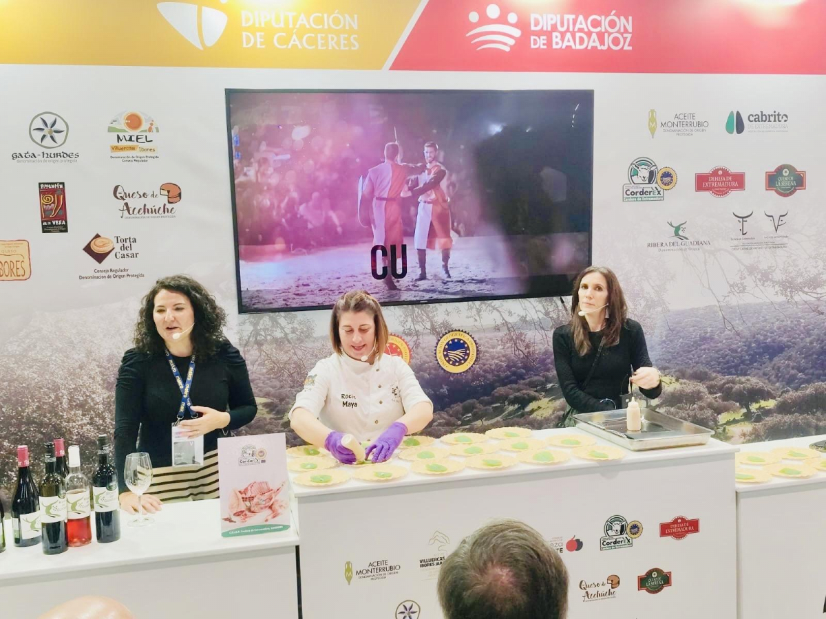 Durante estos días, en el stand de la Institución Provincial, y de la mano de la Asociación de Consejos Reguladores de Extremadura, se ofrece un completo programa de actividades, en horarios de mañana y de tarde, mediante charlas técnicas, degustaciones, y elaboraciones de tapas, a cargo de establecimiento la Taberna de Noa. Este establecimiento, ubicado en Fuentes de León y que cuenta con un Sol Repsol, está ofreciendo degustaciones de tapas como Saam de IGP Corderex y Garbanzos de Valencia del Ventoso con mayonesa de pimentón, Jamón Ibérico DOP Dehesa de Extremadura y Aceite DOP Monterrubio sobre hoja de sisho o Baollito de pimentón relleno de morcillo IGP Ternera de Extremadura, Aceite de DOP Monterrubio con espuma de vino DOP Ribera del Guadiana y ralladura de DOP Queso de La Serena.
