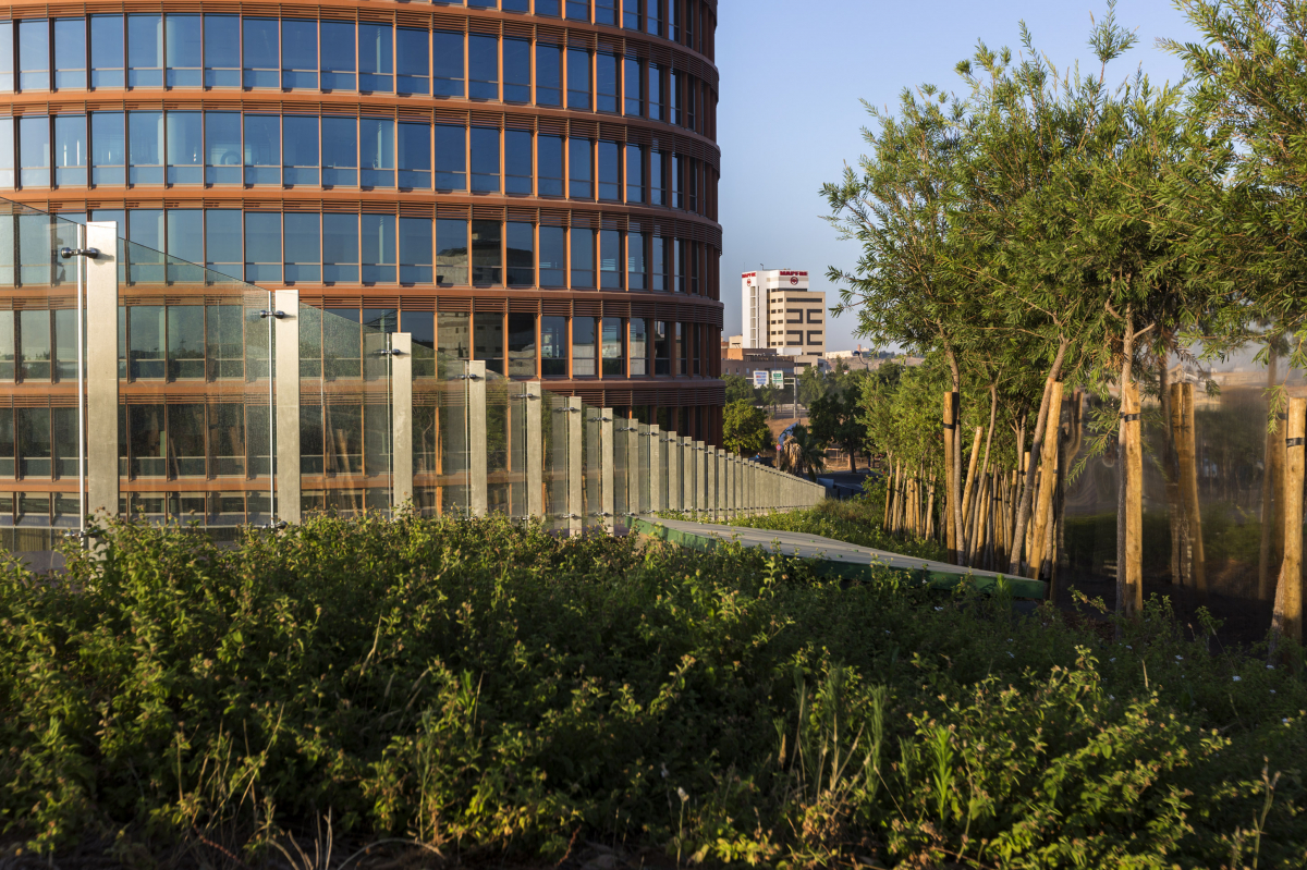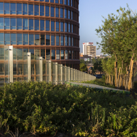 Es el caso de las cubiertas vegetales del Centro Comercial TORRE SEVILLA que ocupan 12.000 metros cuadrados y cuentan con más de 3.000 unidades de vegetación de 60 especies distintas acordes al clima mediterráneo occidental presente en Sevilla. Esta capa vegetal actúa como aislante térmico natural del edificio lo que contribuye al ahorro energético y además cuentan con un sistema de recogida del agua pluvial para su reaprovechamiento en el riego de estas zonas ajardinadas.