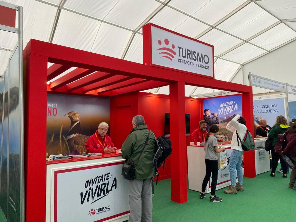 En el stand de Turismo, los visitantes pueden encontrar atención personalizada, además de distintos materiales promocionales sobre gastronomía, cultura y naturaleza de la provincia de Badajoz. Entre ellos destaca la nueva Guía para la Observación de Aves en la Provincia de Badajoz, editada por la Diputación. En ella se ofrecen 5 rutas con las aves que pueden avistarse en cada una.