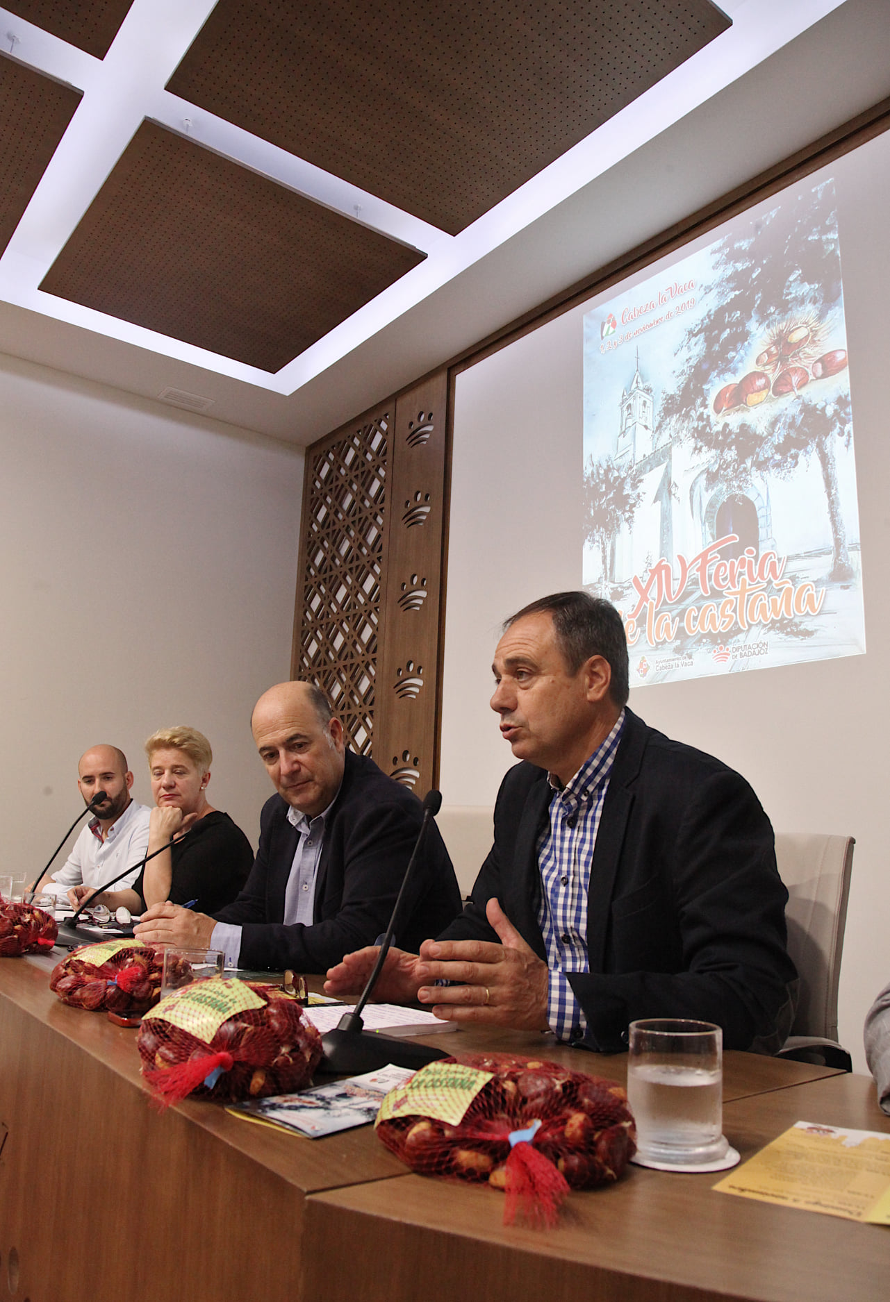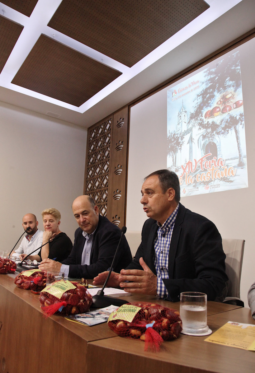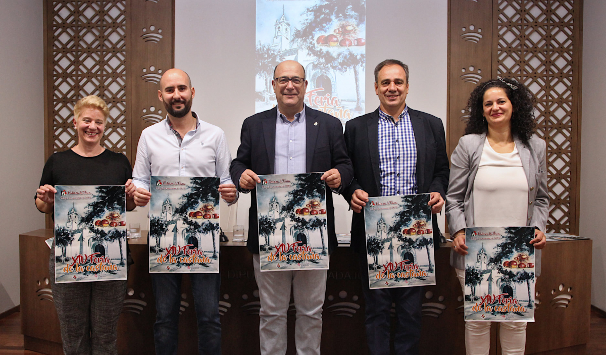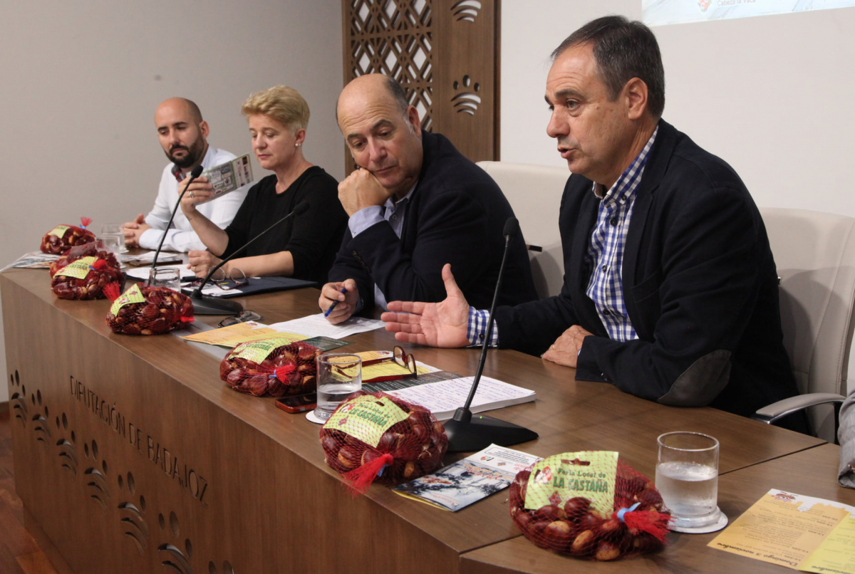 Esta mañana, en la sala de prensa de la Diputación provincial de Badajoz, el diputado delegado del Área de Desarrollo Rural, Reto Demográfico y Turismo, Lorenzo Molina Medina, junto con el alcalde de Cabeza la Vaca, Manuel Vázquez Villanueva, han presentado la XIV Feria de la Castaña.  En la presentación han estado presentes también María del Carmen Maya Santana, teniente de alcalde de Cabeza la Vaca, Luis David Zapata Macías, concejal de cultura, y Felicidad Hernández, directora de la Feria de la Castaña