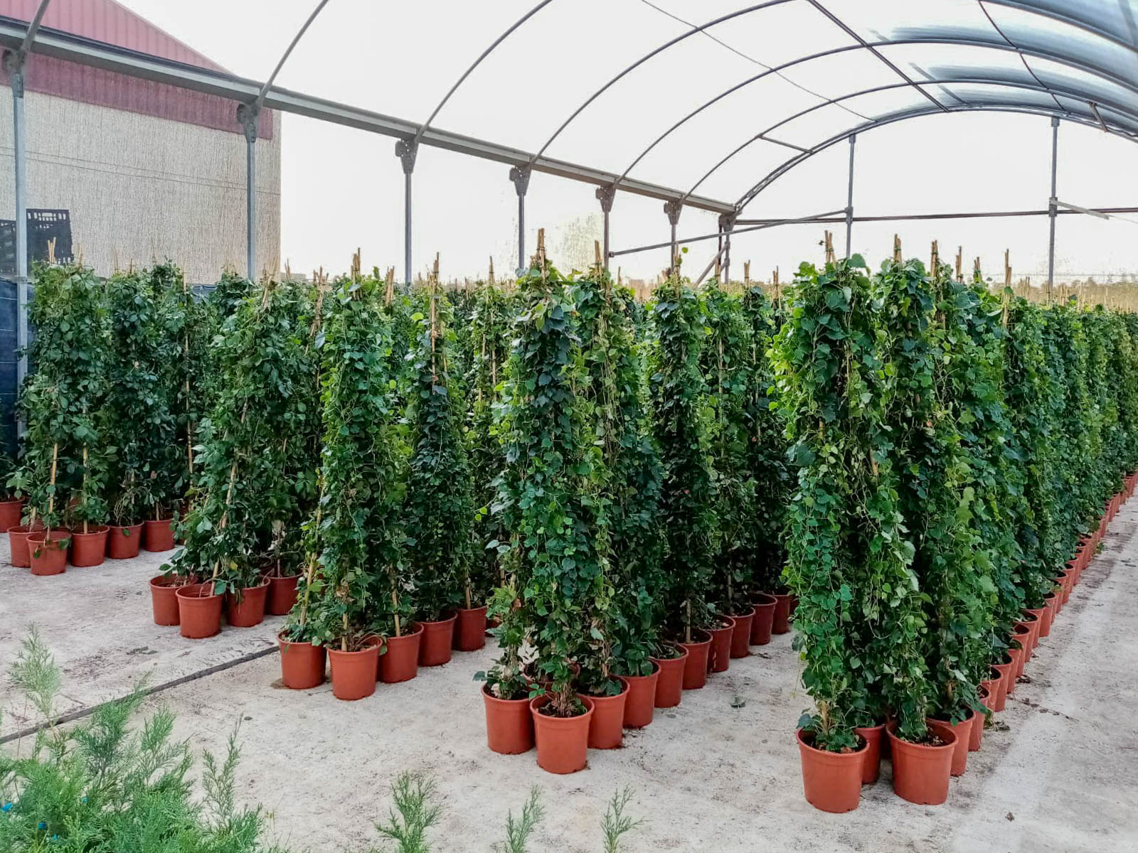 Uno de esos prototipos está destinado a las fachadas y/o muros del centro docente, mediante sombreamientos generados por más de medio millar de parras vírgenes de las variedades “Parthenoccisus Tricuspidata” y “Parthenoccisus Quinquefolia”. Las parras, debido a que son de hoja caduca, permiten que den sombra durante los meses de calor, y que durante los meses de otoño e invierno, en los que se han desprendido de sus hojas, dejen pasar los rayos de sol y el aire fresco.