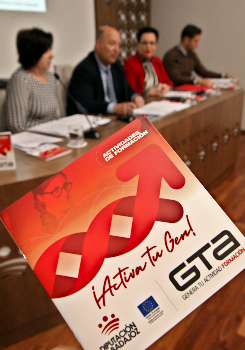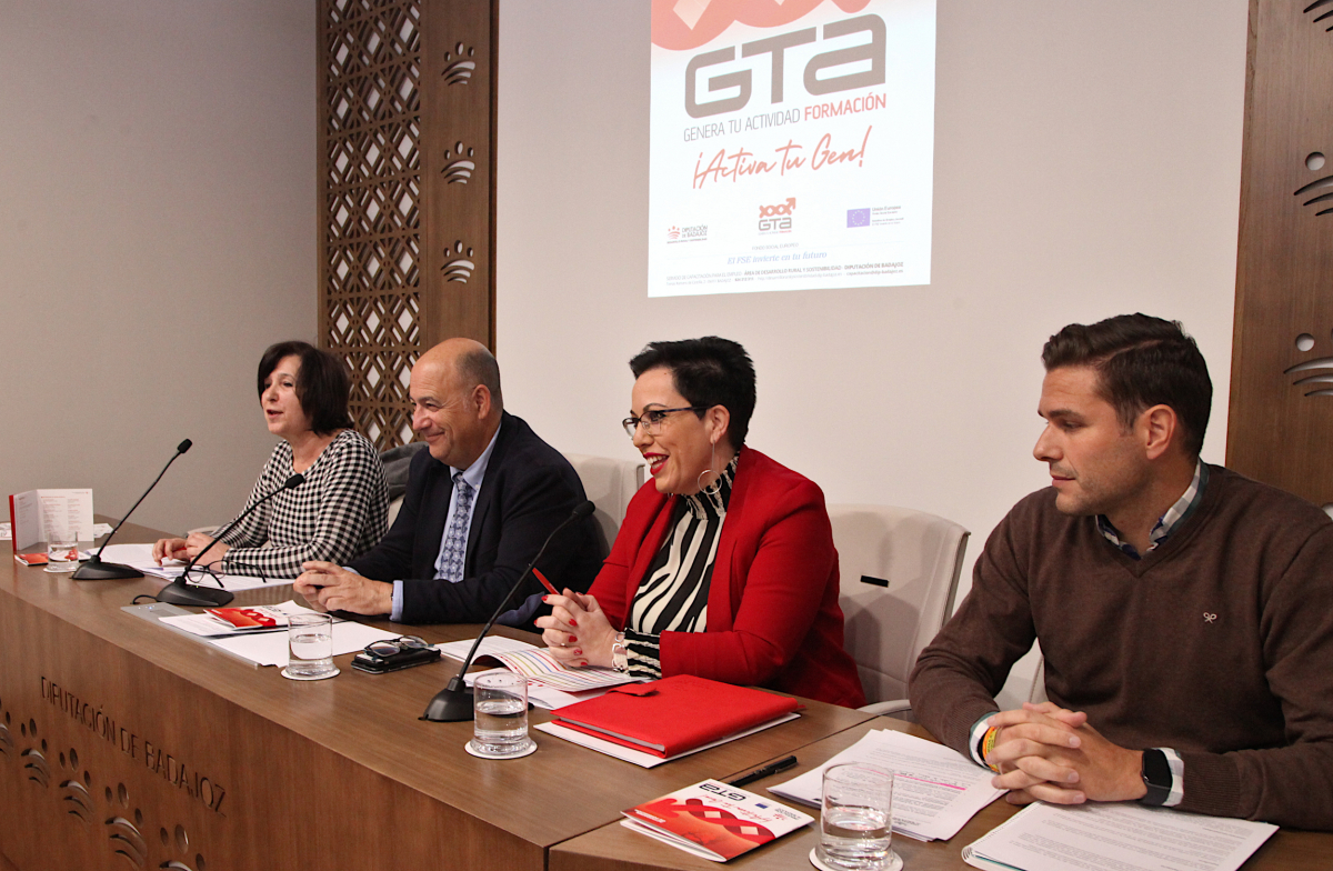 Esta mañana, en la sala de prensa de la Diputación Provincial de Badajoz, se ha presentado el proyecto Genera Tu Actividad Formación (GTA Formación), un proyecto del Servicio de Capacitación para el Empleo del Área de Desarrollo Rural, Reto Demográfico y Turismo de la Diputación de Badajoz.