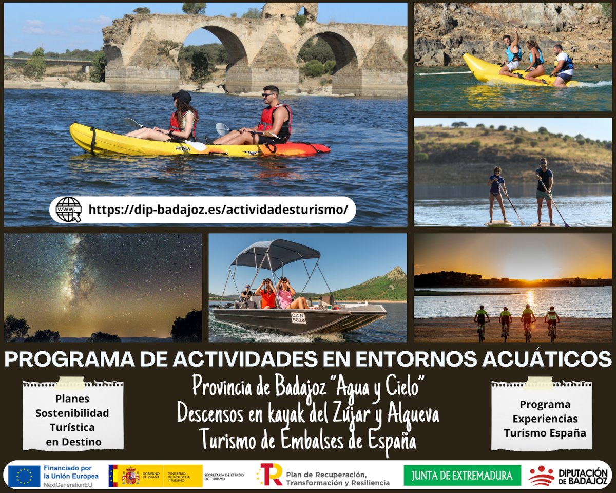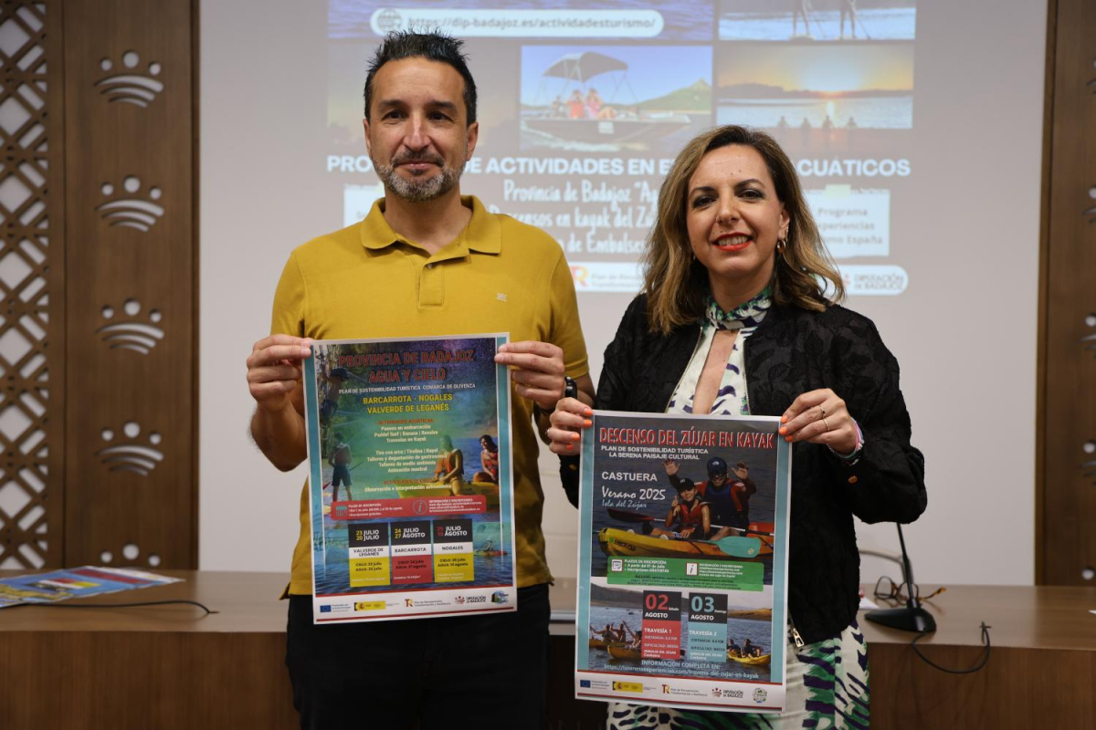 La Diputación de Badajoz ha presentado el Programa de Turismo Acuático 2025 “Provincia de Badajoz, Agua y Cielo” que se desarrollará, del 28 de junio al 14 de septiembre, en varios entornos acuáticos de la provincia.