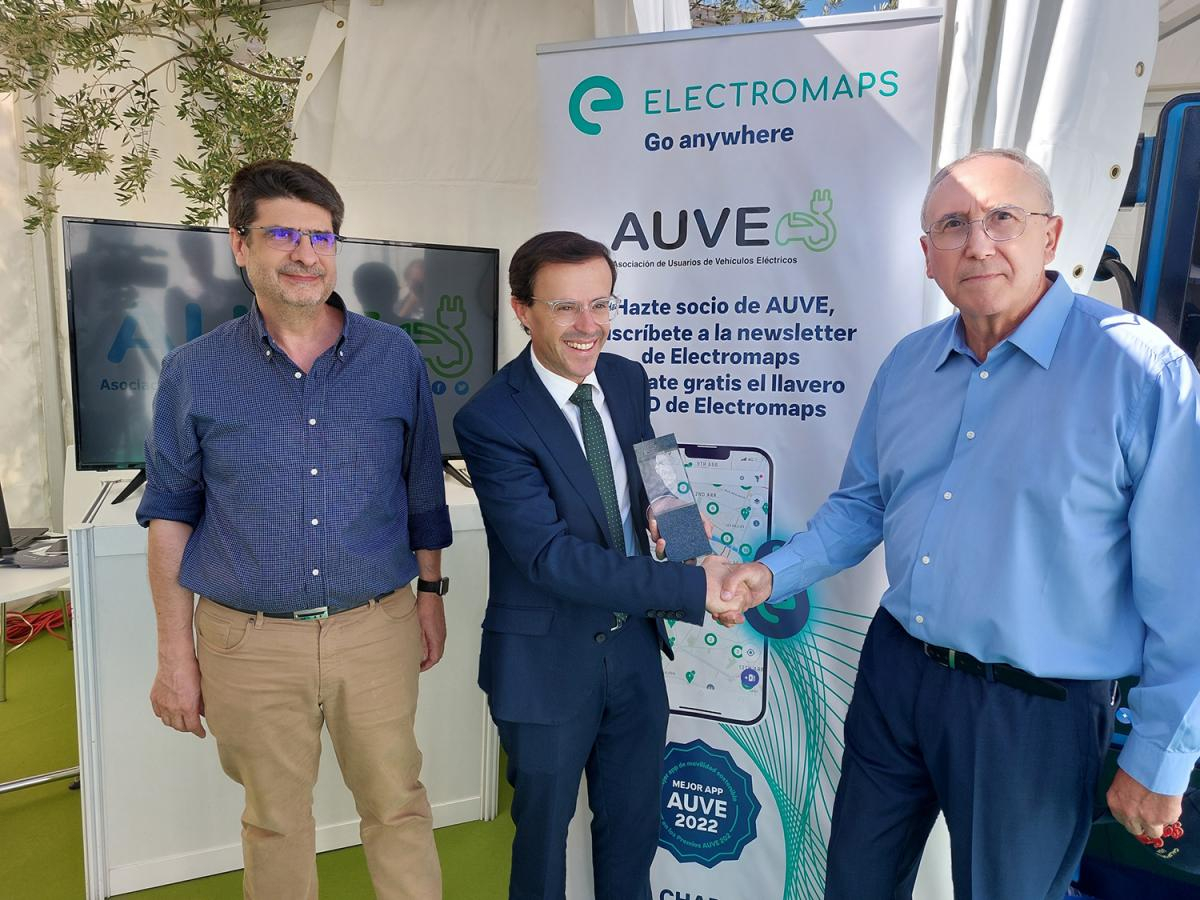 Ha sido el presidente provincial, Miguel Ángel Gallardo, el encargado de recopger este premio nacional como ‘mejor Institución autonómica o provincial’ de AUVE, cuyo objetivo es reconocer los proyectos socialmente más relevantes para el desarrollo de una movilidad sostenible y eficiente. La entrega se ha llevado a cabo en el marco de la VEM 2022: Feria del Vehículo Eléctrico, que ha arrancado hoy en la plaza de Colón de Madrid. Han acompañado a Gallardo el director del área de Presidencia y Relaciones Institucionales, Julián Expósito, y el director del Área de Desarrollo Rural, Reto Demográfico y Turismo, Alejandro Peña.