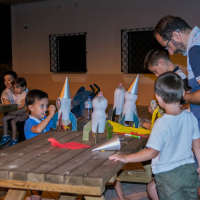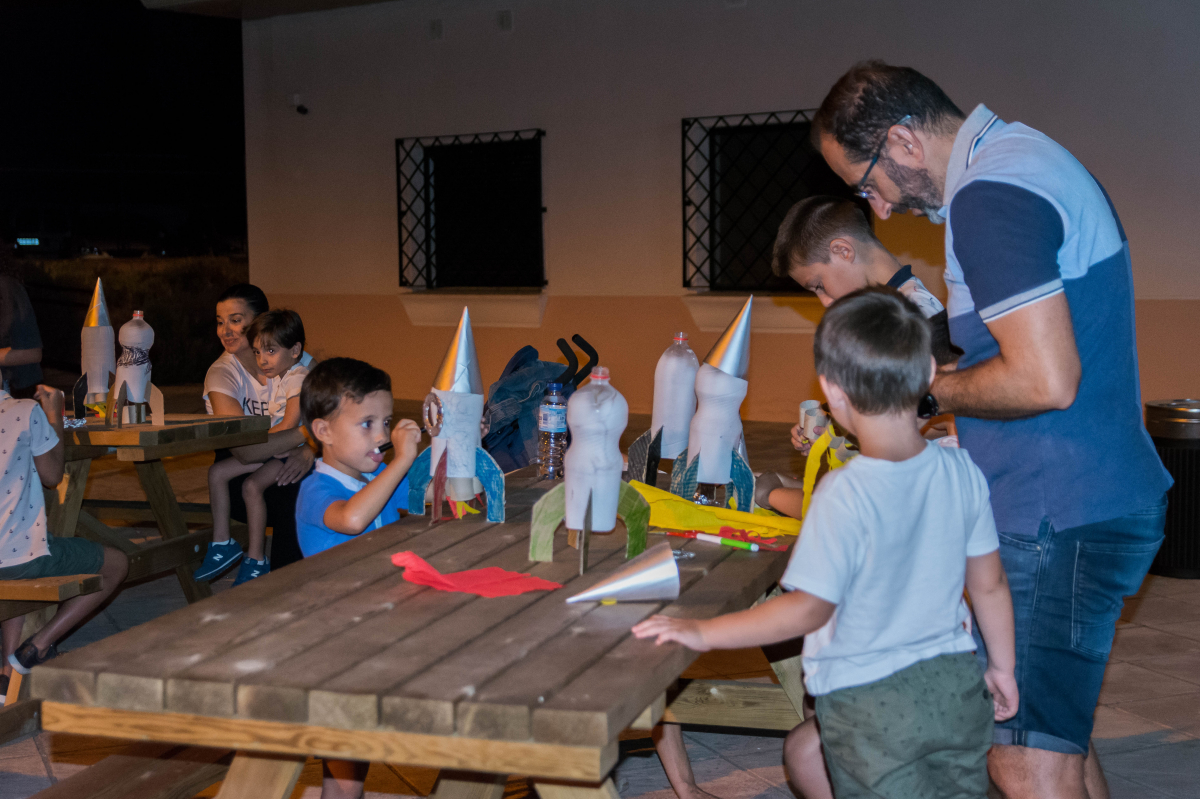 La actividad comenzó con una charla para los adultos sobre cómo fueron los preparativos de la tripulación espacial y el Apollo XI, que dieron como resultado, la llegada del hombre a la Luna por primera vez. Paralelamente, los más pequeños, como si fueran ingenieros aeroespaciales, pudieron construir un cohete espacial con materiales reciclados, como botellas de plástico y cartones.
